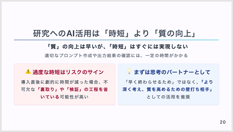 当日の講演資料は、以下の「研究者のための生成AI活用」よりご覧いただけます。