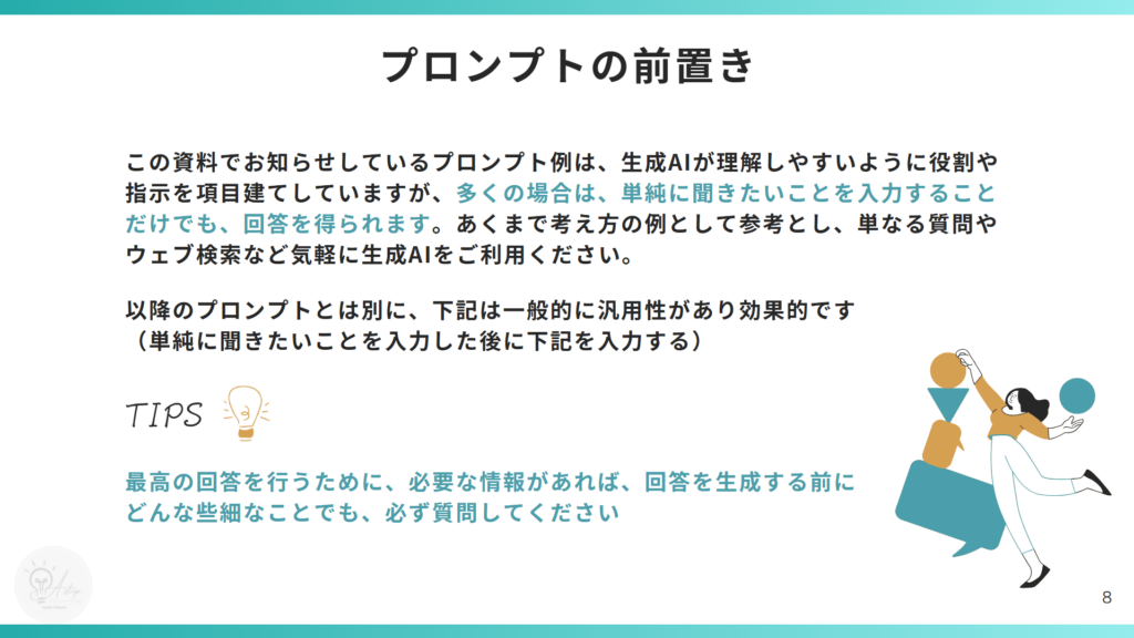 ※ プロンプトのコツは、「よい結果を得るには?」をご参照ください