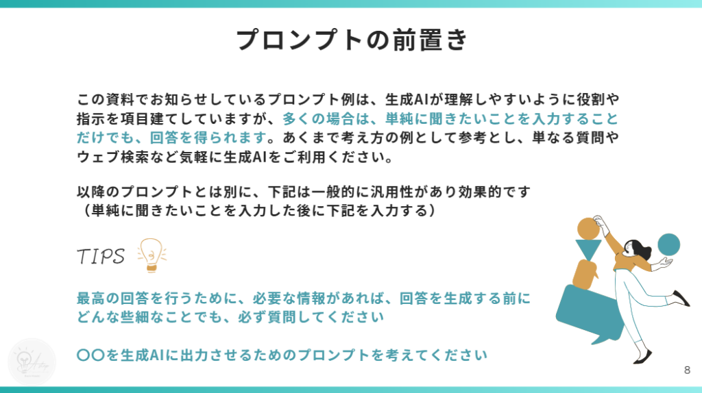※ プロンプトのコツは、「よい結果を得るには?」をご参照ください。