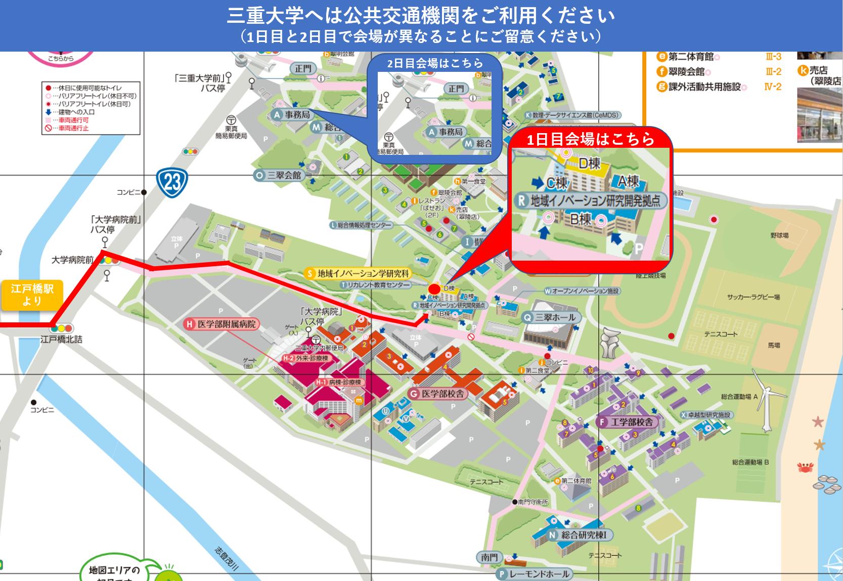 A3 1日目(12月8日)は三重大学地域イノベーション研究開発拠点地域イノベーションホールにて、2日目(12月9日)は本部管理棟にて開催されます(「アクセス」をご参照ください)