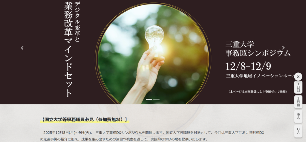 【HP公開】三重大学事務DXシンポジウムのページを公開しました